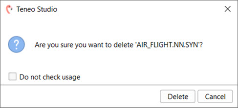 The experienced Teneo user will notice that the dialogue when deleting documents in Teneo Studio Desktop has changed a little and now includes a check box to select Do not check usage for cases where the user wants to delete documents without checking first if the document(s) is referenced somewhere in the solution.