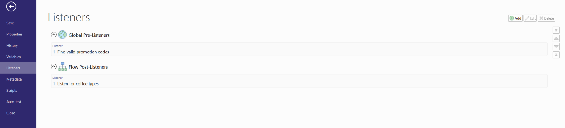 As opposed to Global Listeners, Flow Listeners work on a Flow level, listening for all inputs that trigger or pass through the Flow.